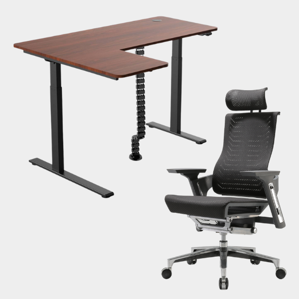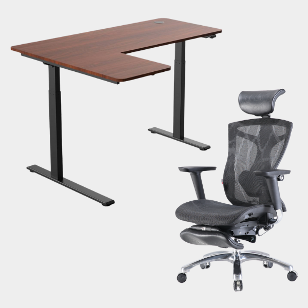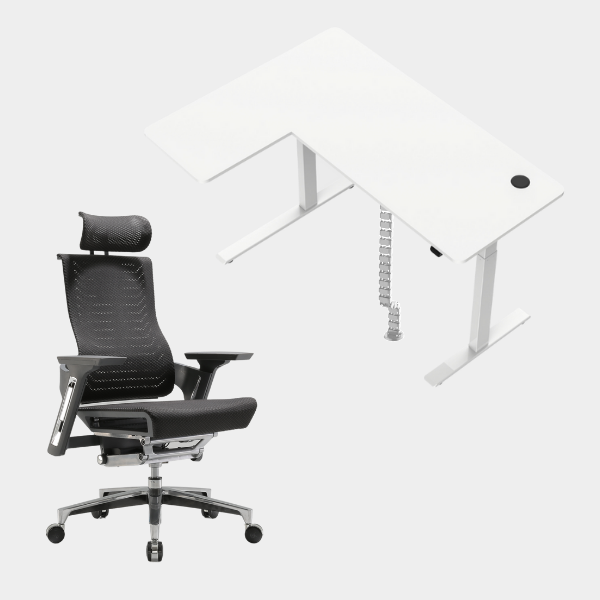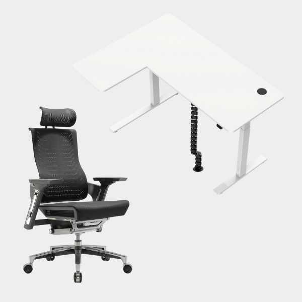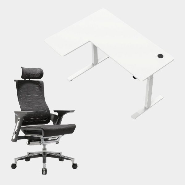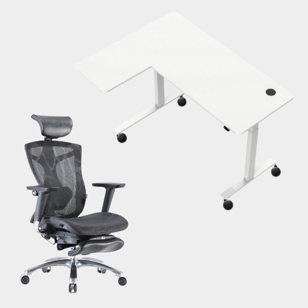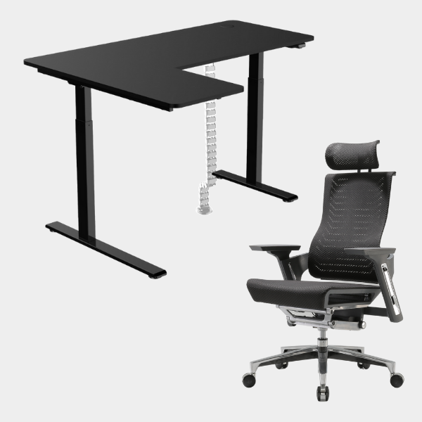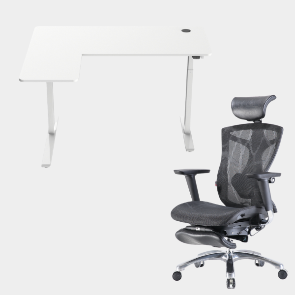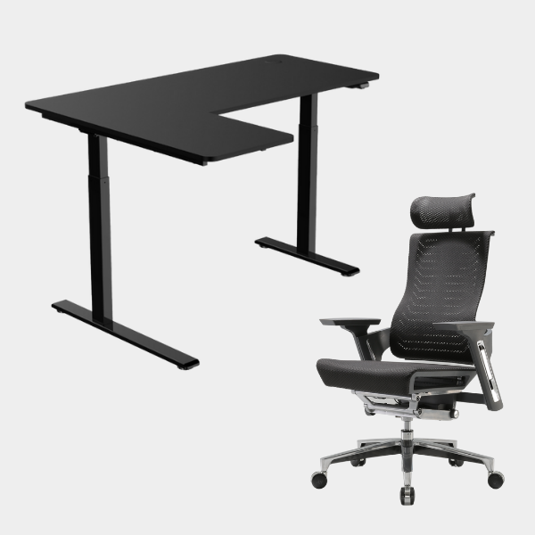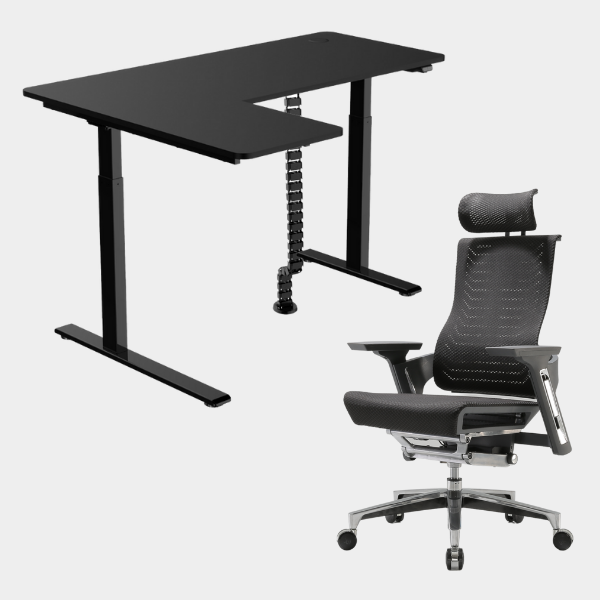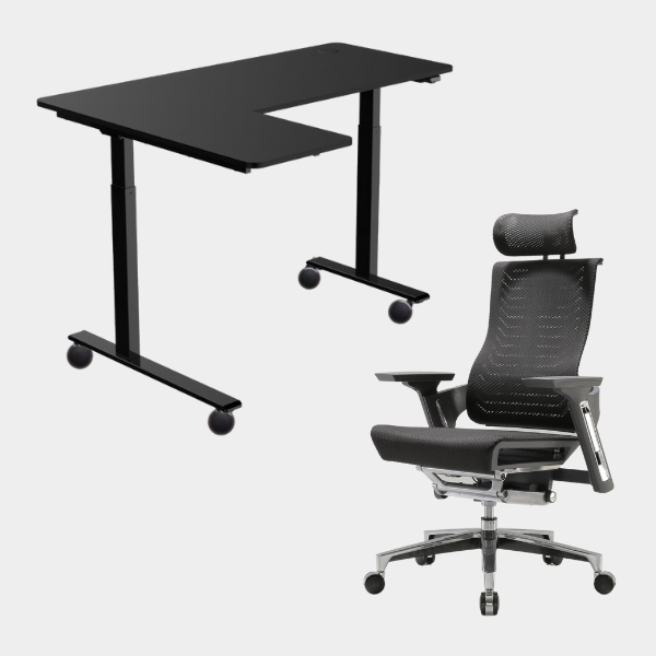 The L-shaped ergonomic height-adjustable design provides extensive space for work and play.