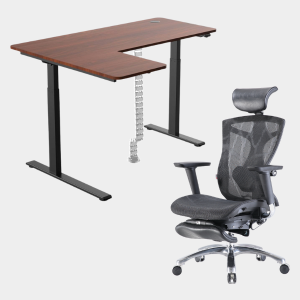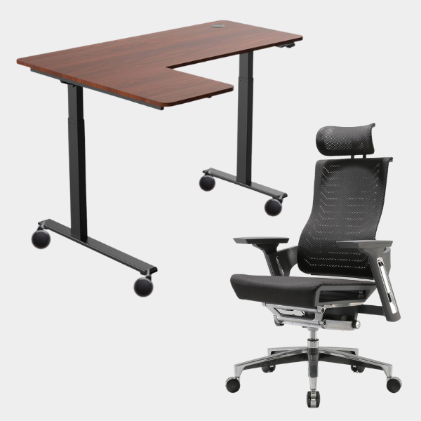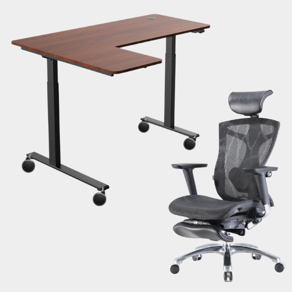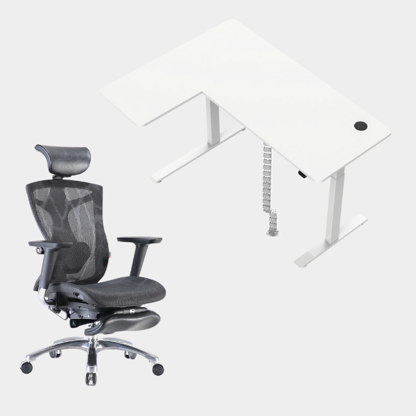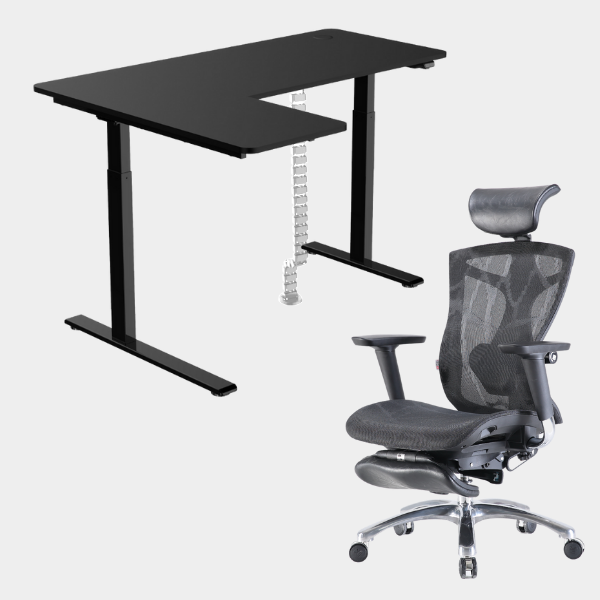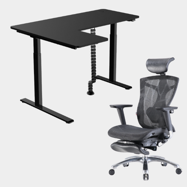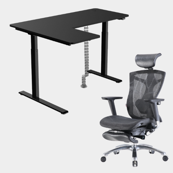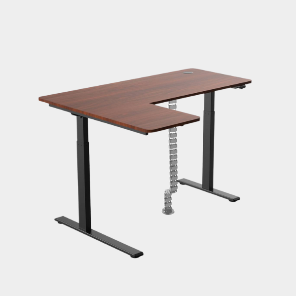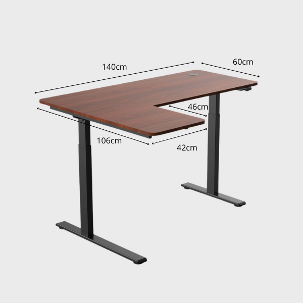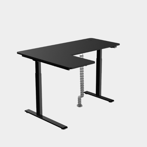 The L-shaped ergonomic height-adjustable design provides extensive space for work and play. This simple 2-button and single motor table can be adjusted powerfully and smoothly to a maximum height of 1.23m. The grommet hole design also allows users to organize their cables neatly underneath the table providing the users with a neat environment for productivity.